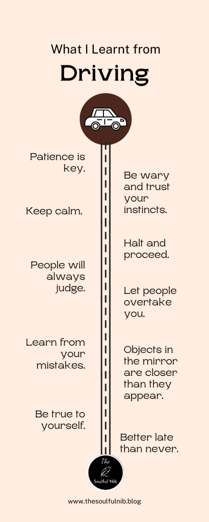 Learning to drive was not just learning the skill in itself, it has helped me know way beyond that. This blog post is all about the lessons I have learned while learning to drive.